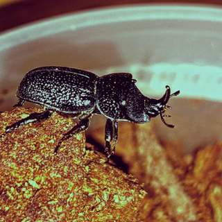 The other is called the rugose beetle, , named so due to the pitted dimples on its wing covers. While they are stag beetles this species more closely resembles rhino beetles with a single 'horn' on males which they use to battle each other for the best logs and mating rights to the females.